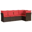 vidaXL Vrtna sedežna garnitura 5-delna z blazinami rjav poli ratan