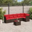 vidaXL Vrtna sedežna garnitura 7-delna z blazinami rjav poli ratan