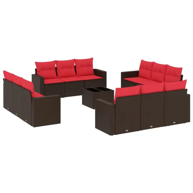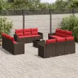 vidaXL Vrtna sedežna garnitura 13-delna z blazinami rjav poli ratan