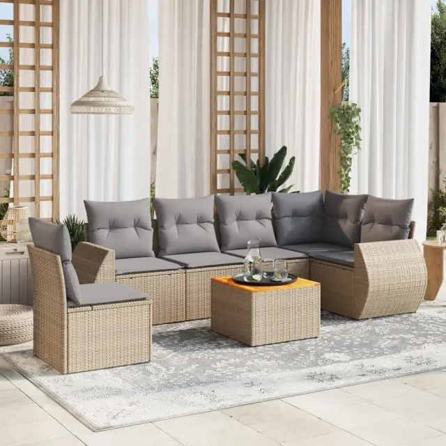 vidaXL Vrtna sedežna garnitura 7-delna z blazinami bež poli ratan