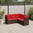 vidaXL Vrtna sedežna garnitura 5-delna z blazinami rjav poli ratan