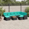 vidaXL Vrtna sedežna garnitura 10-delna z blazinami črn poli ratan