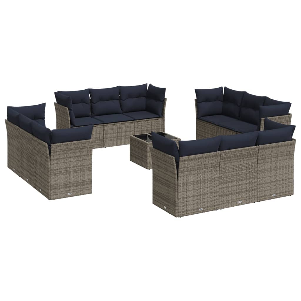 vidaXL Vrtna sedežna garnitura 13-delna z blazinami siv poli ratan