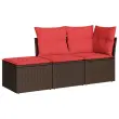 vidaXL Vrtna sedežna garnitura 3-delna z blazinami rjav poli ratan