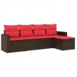 vidaXL Vrtna sedežna garnitura 5-delna z blazinami rjav poli ratan