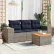 vidaXL Vrtna sedežna garnitura 4-delna z blazinami siv poli ratan
