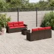 vidaXL Vrtna sedežna garnitura 7-delna z blazinami rjav poli ratan