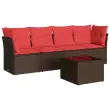 vidaXL Vrtna sedežna garnitura 5-delna z blazinami rjav poli ratan
