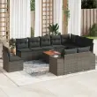 vidaXL Vrtna sedežna garnitura 11-delna z blazinami siv poli ratan