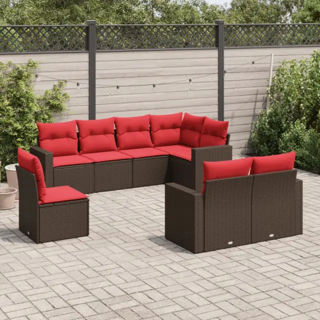 vidaXL Vrtna sedežna garnitura 8-delna z blazinami rjav poli ratan