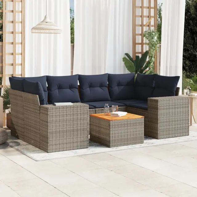 vidaXL Vrtna sedežna garnitura 7-delna z blazinami siv poli ratan