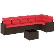 vidaXL Vrtna sedežna garnitura 7-delna z blazinami rjav poli ratan