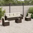 vidaXL Vrtna sedežna garnitura 7-delna z blazinami rjav poli ratan