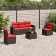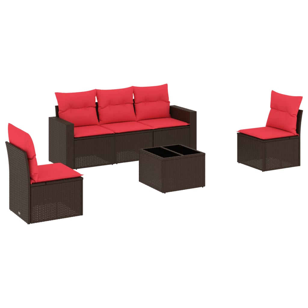 vidaXL Vrtna sedežna garnitura 6-delna z blazinami rjav poli ratan