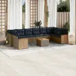vidaXL Vrtna sedežna garnitura 11-delna z blazinami siv poli ratan
