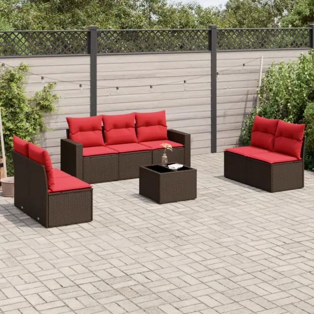 vidaXL Vrtna sedežna garnitura 8-delna z blazinami rjav poli ratan