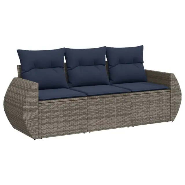 vidaXL Vrtna sedežna garnitura 3-delna z blazinami siv poli ratan