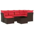 vidaXL Vrtna sedežna garnitura 7-delna z blazinami rjav poli ratan