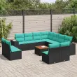vidaXL Vrtna sedežna garnitura 12-delna z blazinami črn poli ratan