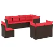 vidaXL Vrtna sedežna garnitura 8-delna z blazinami rjav poli ratan