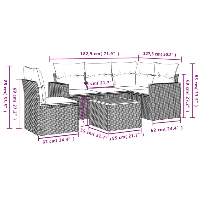 Ta vrtna sedežna garnitura je popoln dodatek za vaše dvorišče, teraso ali verando, saj zagotavlja udoben in vabljiv prostor za klepet z družino in prijatelji ali preprosto za sprostitev in uživanje na prostem.