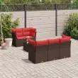 vidaXL Vrtna sedežna garnitura 6-delna z blazinami rjav poli ratan