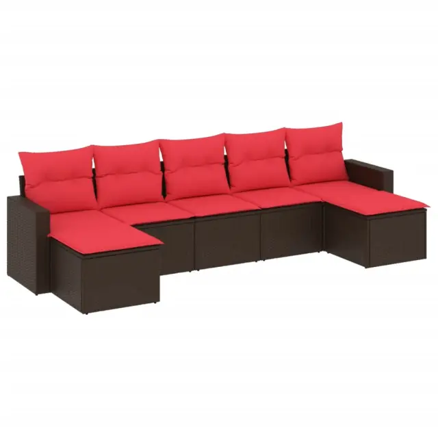vidaXL Vrtna sedežna garnitura 7-delna z blazinami rjav poli ratan