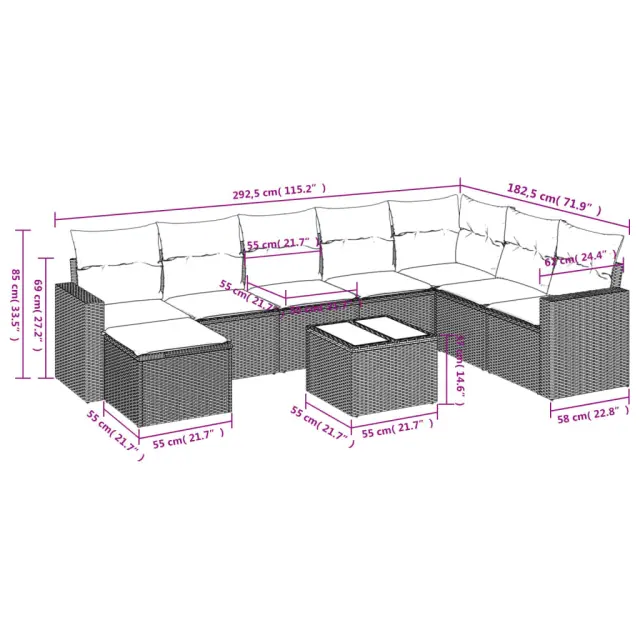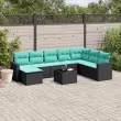 vidaXL Vrtna sedežna garnitura 9-delna z blazinami črn poli ratan