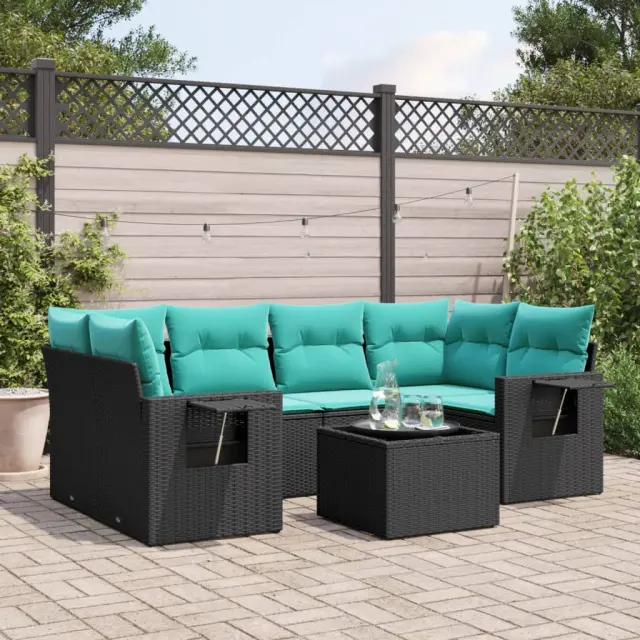 vidaXL Vrtna sedežna garnitura 7-delna z blazinami črn poli ratan