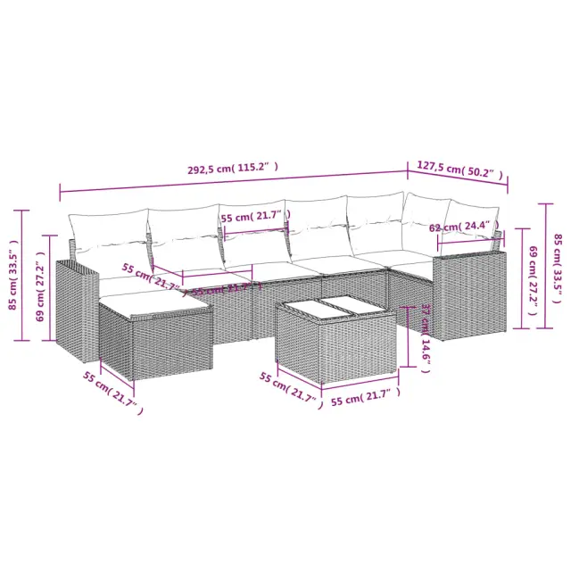 Ta vrtna sedežna garnitura je popoln dodatek za vaše dvorišče, teraso ali verando, saj zagotavlja udoben in vabljiv prostor za klepet z družino in prijatelji ali preprosto za sprostitev in uživanje na prostem.