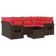 vidaXL Vrtna sedežna garnitura 7-delna z blazinami rjav poli ratan