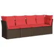vidaXL Vrtna sedežna garnitura 4-delna z blazinami rjav poli ratan
