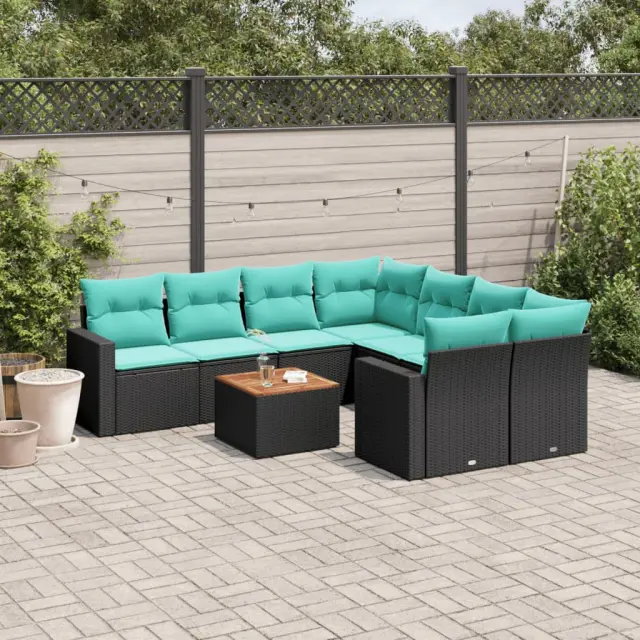vidaXL Vrtna sedežna garnitura 9-delna z blazinami črn poli ratan
