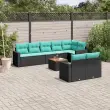 vidaXL Vrtna sedežna garnitura 9-delna z blazinami črn poli ratan