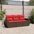 vidaXL Vrtna sedežna garnitura 3-delna z blazinami rjav poli ratan