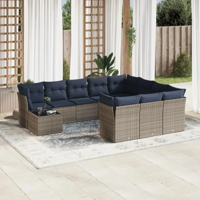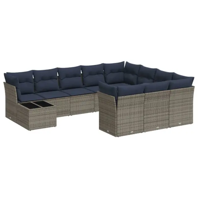 vidaXL Vrtna sedežna garnitura 11-delna z blazinami siv poli ratan