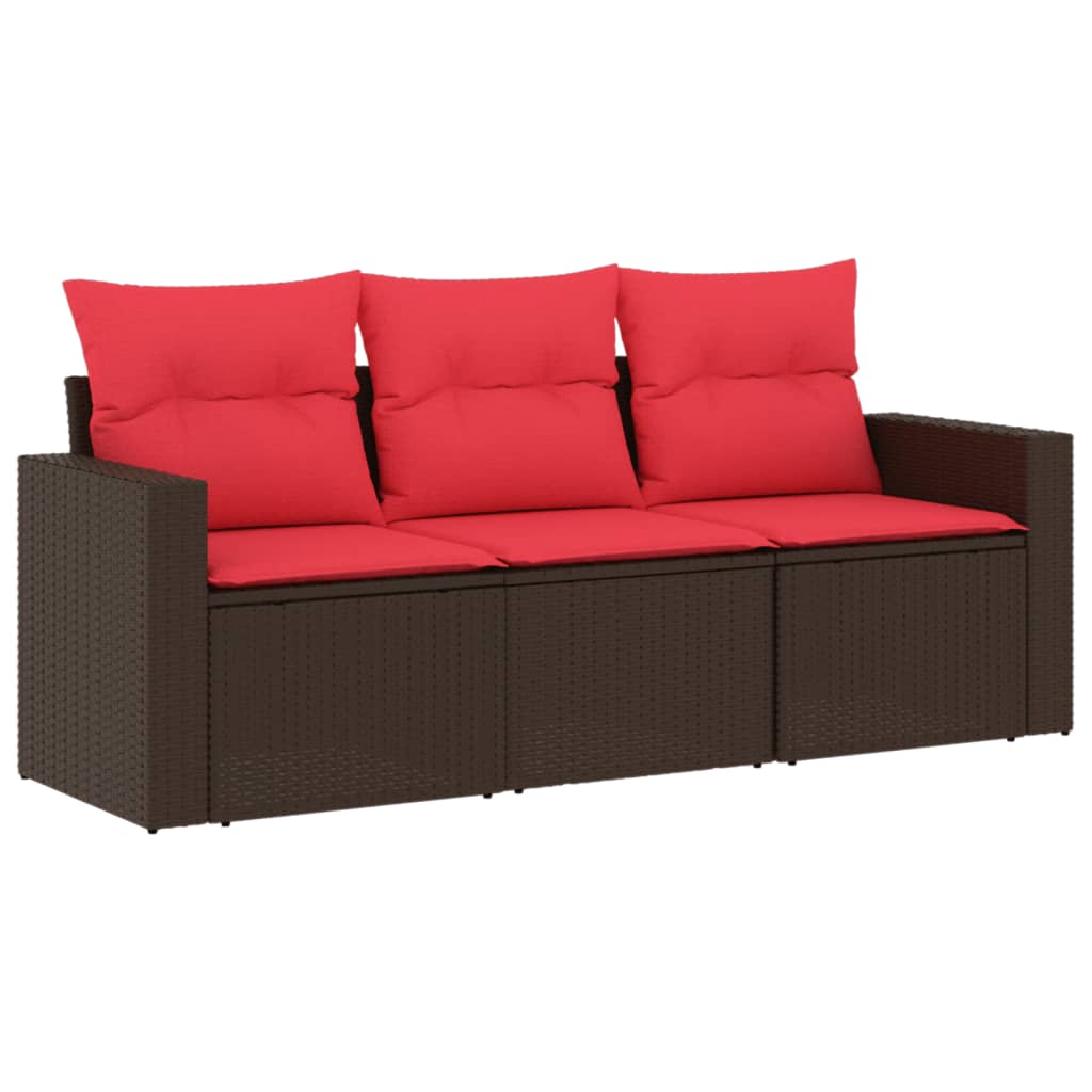 vidaXL Vrtna sedežna garnitura 3-delna z blazinami rjav poli ratan