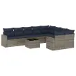 vidaXL Vrtna sedežna garnitura 10-delna z blazinami siv poli ratan