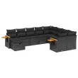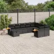 vidaXL Vrtna sedežna garnitura 10-delna z blazinami črn poli ratan
