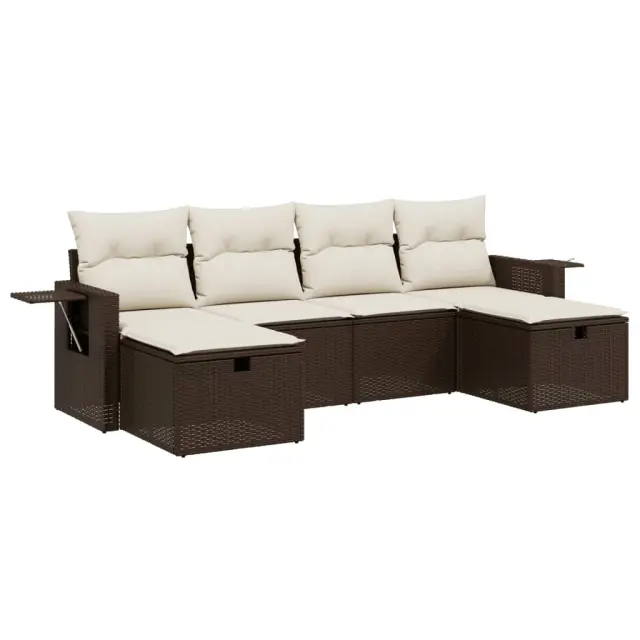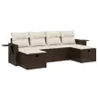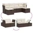 vidaXL Vrtna sedežna garnitura 6-delna z blazinami rjav poli ratan
