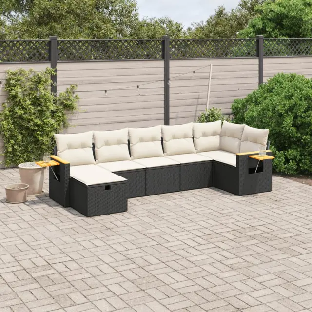 vidaXL Vrtna sedežna garnitura 7-delna z blazinami črn poli ratan