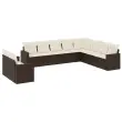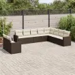 vidaXL Vrtna sedežna garnitura 10-delna z blazinami rjava poli ratan