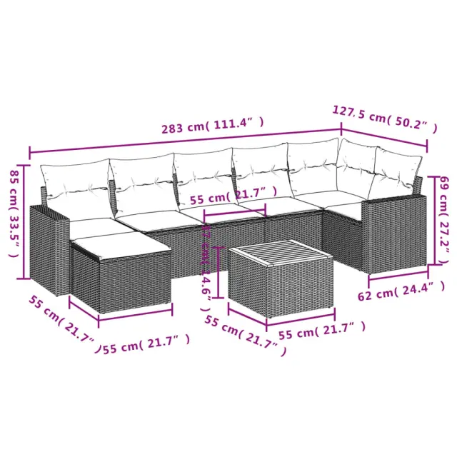 Ta vrtna sedežna garnitura je popoln dodatek za vaše dvorišče, teraso ali verando, saj zagotavlja udoben in vabljiv prostor za klepet z družino in prijatelji ali preprosto za sprostitev in uživanje na prostem.
