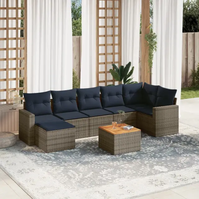 vidaXL Vrtna sedežna garnitura 8-delna z blazinami siv poli ratan