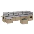 Ta vrtna sedežna garnitura je popoln dodatek za vaše dvorišče, teraso ali verando, saj zagotavlja udoben in vabljiv prostor za klepet z družino in prijatelji ali preprosto za sprostitev in uživanje na prostem. Vzdržljiv material: PE ratan, znan tudi kot poli ratan, je močan sintetični material, ki zahteva malo vzdrževanja in je videti kot naravni ratan. Je lahek, enostaven za čiščenje in se zaradi svoje vzdržljivosti in odpornosti na vremenske vplive pogosto uporablja za zunanje pohištvo.Steklena mizna plošča: Površina zunanje mize je izdelana iz močnega in trpežnega kaljenega stekla, kar omogoča enostavno čiščenje z vlažno krpo in vašemu zunanjemu prostoru doda pridih elegance.Prevleko je mogoče odstraniti in oprati: Te sedežne blazine imajo odstranljive prevleke za lažje pranje in vzdrževanje.Robusten in stabilen okvir: Prašno barvan jekleni okvir zagotavlja, da je vrtno pohištvo močno in stabilno za vsakodnevno uporabo na prostem.Modularna zasnova: Ta komplet zunanjega pohištva ima modularno zasnovo, zaradi česar je popolnoma prilagodljiv in enostaven za premikanje, tako da lahko zunanjo garnituro postavite kakor koli želite. Dobro je vedeti:Če želite, da vaše zunanje pohištvo ostane lepo, vam priporočamo, da ga zaščitite z vodoodporno prevleko.Maksimalna nosilnost (na sedež): 110 kgUV-odpornoPotrebno sestavljanje: DaKotni sedež:Barva: Mešano bežMaterial: PE ratan, jeklen okvir s prašnim premazomDimenzije: 62 x 62 x 69 cm (Š x G x V)Velikost sedeža: 55 x 55 cm (Š x G)Višina sedeža, merjena od tal: 37 cmSrednji sedež:Barva: Mešano bežMaterial: PE ratan, jeklen okvir s prašnim premazomDimenzije: 55 x 62 x 69 cm (Š x G x V)Velikost sedeža: 55 x 55 cm (Š x G)Višina sedeža, merjena od tal: 37 cmKavč z naslonjali za roke:Barva: Mešano bežMaterial: PE ratan, jeklen okvir s prašnim premazomDimenzije: 61,5 x 62 x 69 cm (Š x G x V)Velikost sedeža: 55 x 55 cm (Š x G)Višina sedeža, merjena od tal: 37 cmVišina naslonjal za roke od tal: 55 cmStolček za noge:Barva: Mešano bežMaterial: PE ratan, jeklen okvir s prašnim premazomDimenzije: 55 x 55 x 37 cm (Š x G x V)Velikost sedeža: 55 x 55 cm (Š x G)Višina sedeža, merjena od tal: 37 cmMiza:Barva: Mešano bežMaterial: PE ratan, jeklo s prašnim premazom, kaljeno stekloDimenzije: 55 x 55 x 37 cm (D x Š x V)Blazina:Barva: Svetlo sivaMaterial prevleke: Tkanina (100 % poliester)Polnilo sedežne blazine: PenaPolnilo hrbtne blazine: bombažna vlaknaDimenzije sedežne blazine: 55 x 55 x 3 cm (Š x G x D)Dimenzije hrbtne blazine: 55 x 45 x 13 cm (D x Š x D)Paket vsebuje:1 x Kotni sedež3 x Srednji sedež2 x Kavč z naslonjali za roke1 x Stolček za noge1 x Vrtna miza8 x Blazina za hrbet7 x Sedežna blazina s snemljivo in pralno prevleko 3263825
