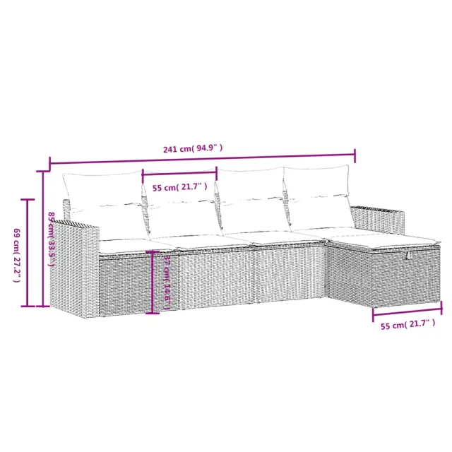 vidaXL Vrtna sedežna garnitura 5-delna z blazinami bež poli ratan