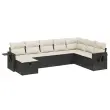 vidaXL Vrtna sedežna garnitura 8-delna z blazinami črn poli ratan