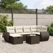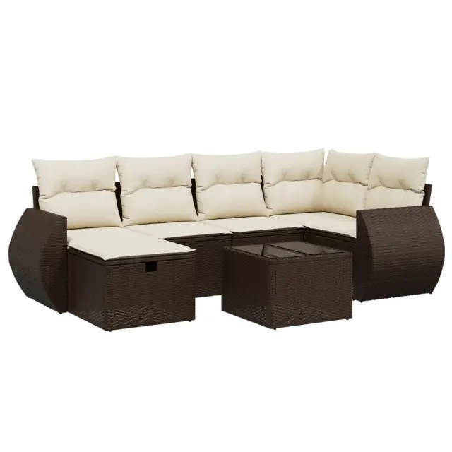 Ta vrtna sedežna garnitura je popoln dodatek za vaše dvorišče, teraso ali verando, saj zagotavlja udoben in vabljiv prostor za klepet z družino in prijatelji ali preprosto za sprostitev in uživanje na prostem. Vzdržljiv material: PE ratan, znan tudi kot poli ratan, je močan sintetični material, ki zahteva malo vzdrževanja in je videti kot naravni ratan. Je lahek, enostaven za čiščenje in se zaradi svoje vzdržljivosti in odpornosti na vremenske vplive pogosto uporablja za zunanje pohištvo.Steklena mizna plošča: Površina zunanje mize je izdelana iz močnega in trpežnega kaljenega stekla, kar omogoča enostavno čiščenje z vlažno krpo in vašemu zunanjemu prostoru doda pridih elegance.Prevleko je mogoče odstraniti in oprati: Te sedežne blazine imajo odstranljive prevleke za lažje pranje in vzdrževanje.Robusten in stabilen okvir: Prašno barvan jekleni okvir zagotavlja, da je vrtno pohištvo močno in stabilno za vsakodnevno uporabo na prostem.Modularna zasnova: Ta komplet zunanjega pohištva ima modularno zasnovo, zaradi česar je popolnoma prilagodljiv in enostaven za premikanje, tako da lahko zunanjo garnituro postavite kakor koli želite. Dobro je vedeti:Če želite, da vaše zunanje pohištvo ostane lepo, vam priporočamo, da ga zaščitite z vodoodporno prevleko.Maksimalna nosilnost (na sedež): 110 kgUV-odpornoPotrebno sestavljanje: DaKotni sedež:Barva: RjavaMaterial: PE ratan, jeklen okvir s prašnim premazomDimenzije: 62 x 62 x 69 cm (Š x G x V)Velikost sedeža: 55 x 55 cm (Š x G)Višina sedeža, merjena od tal: 37 cmSrednji sedež:Barva: RjavaMaterial: PE ratan, jeklen okvir s prašnim premazomDimenzije: 55 x 62 x 69 cm (Š x G x V)Velikost sedeža: 55 x 55 cm (Š x G)Višina sedeža, merjena od tal: 37 cmKavč z naslonjali za roke:Barva: RjavaMaterial: PE ratan, jeklen okvir s prašnim premazomDimenzije: 70 x 62,5 x 69 cm (Š x G x V)Velikost sedeža: 55 x 55 cm (Š x G)Višina sedeža, merjena od tal: 37 cmVišina naslonjal za roke od tal: 55 cmStolček za noge:Barva: RjavaMaterial: PE ratan, jeklen okvir s prašnim premazomDimenzije: 55 x 55 x 37 cm (Š x G x V)Velikost sedeža: 55 x 55 cm (Š x G)Višina sedeža, merjena od tal: 37 cmMiza:Barva: RjavaMaterial: PE ratan, jeklo s prašnim premazom, kaljeno stekloDimenzije: 55 x 55 x 37 cm (D x Š x V)Blazina:Barva: Kremno belaMaterial prevleke: Tkanina (100 % poliester)Polnilo sedežne blazine: PenaPolnilo hrbtne blazine: bombažna vlaknaDimenzije sedežne blazine: 55 x 55 x 3 cm (Š x G x D)Dimenzije hrbtne blazine: 55 x 45 x 13 cm (D x Š x D)Paket vsebuje:1 x Kotni sedež2 x Sredinski sedež2 x Kavč z naslonjali za roke1 x Stolček za noge1 x Vrtna miza7 x Hrbtna blazina6 x Sedežna blazina s snemljivo pralno prevleko 3264119