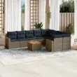 vidaXL Vrtna sedežna garnitura 10-delna z blazinami siv poli ratan