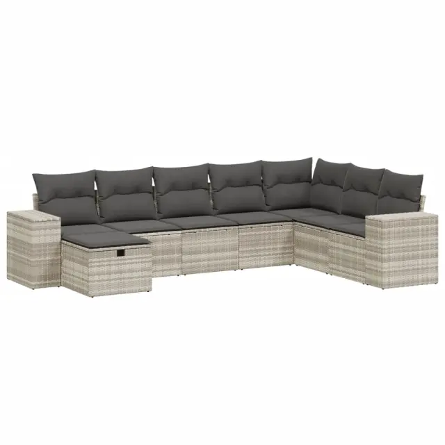 vidaXL Vrtna sedežna garnitura 8-delna z blazinami sv. siv poli ratan